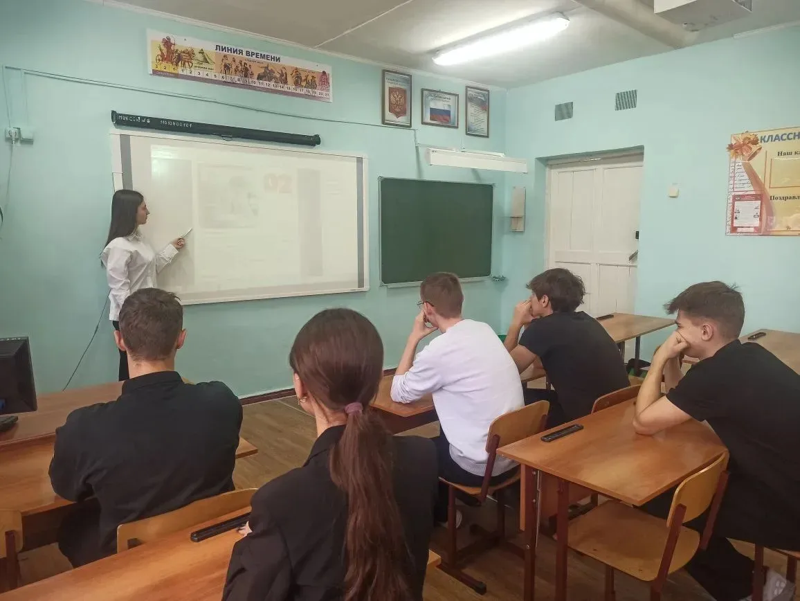 23 апреля 2025 г. Советником директора по воспитанию Егорушкиной С. Л. проведен урок, разработанный проектом «Без срока давности». Данное занятие было посвящено памяти жертв геноцида Советского народа от немецко-фашистских захватчиков в годы Великой Отечественной войны 1941 – 1945 гг.
