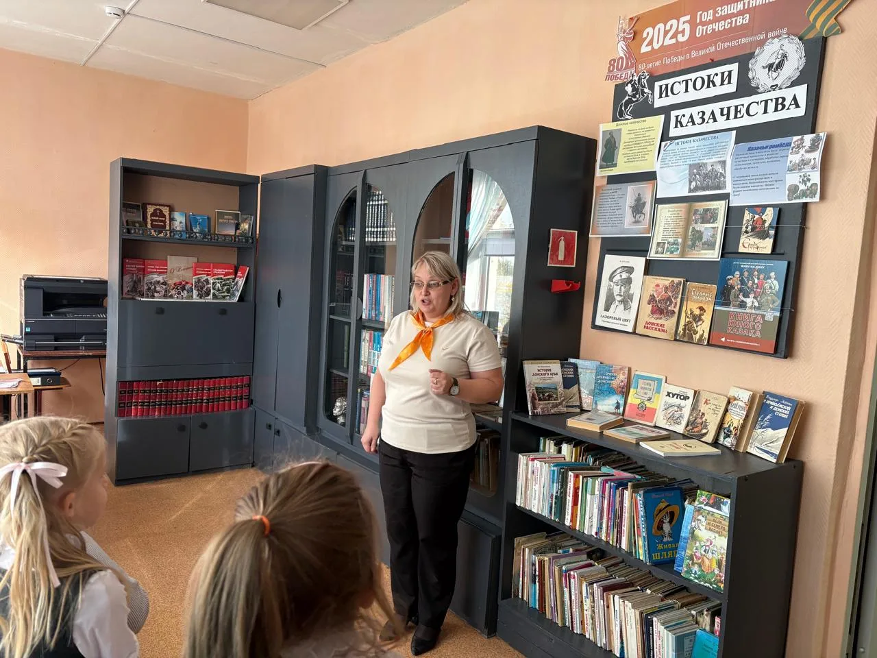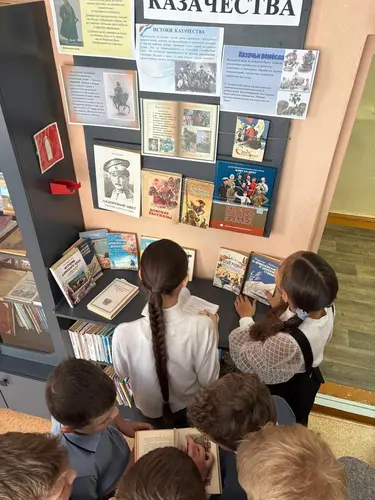 Для обучающихся начальных классов МБОУ СОШ №6 по инициативе советника директора по воспитанию Егорушкиной С. Л., под руководством педагога-библиотекаря Суворовой Н.А. и при участии активистов Движения Первых организована тематическая выставка "Истоки казачества".