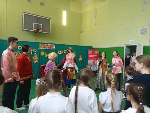Театрализованное представление "Широкая масленица". Юные актеры провели с учащимися весёлые хороводы и народные игры.