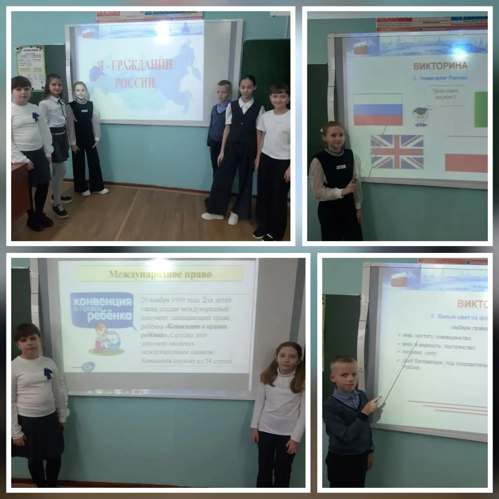 В 4 класса мероприятие было посвящено теме "Я - гражданин России". Для ребят раскрыты такие положения как: