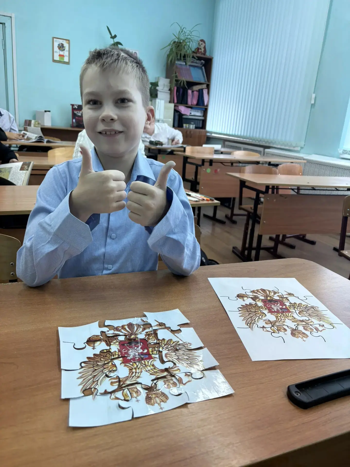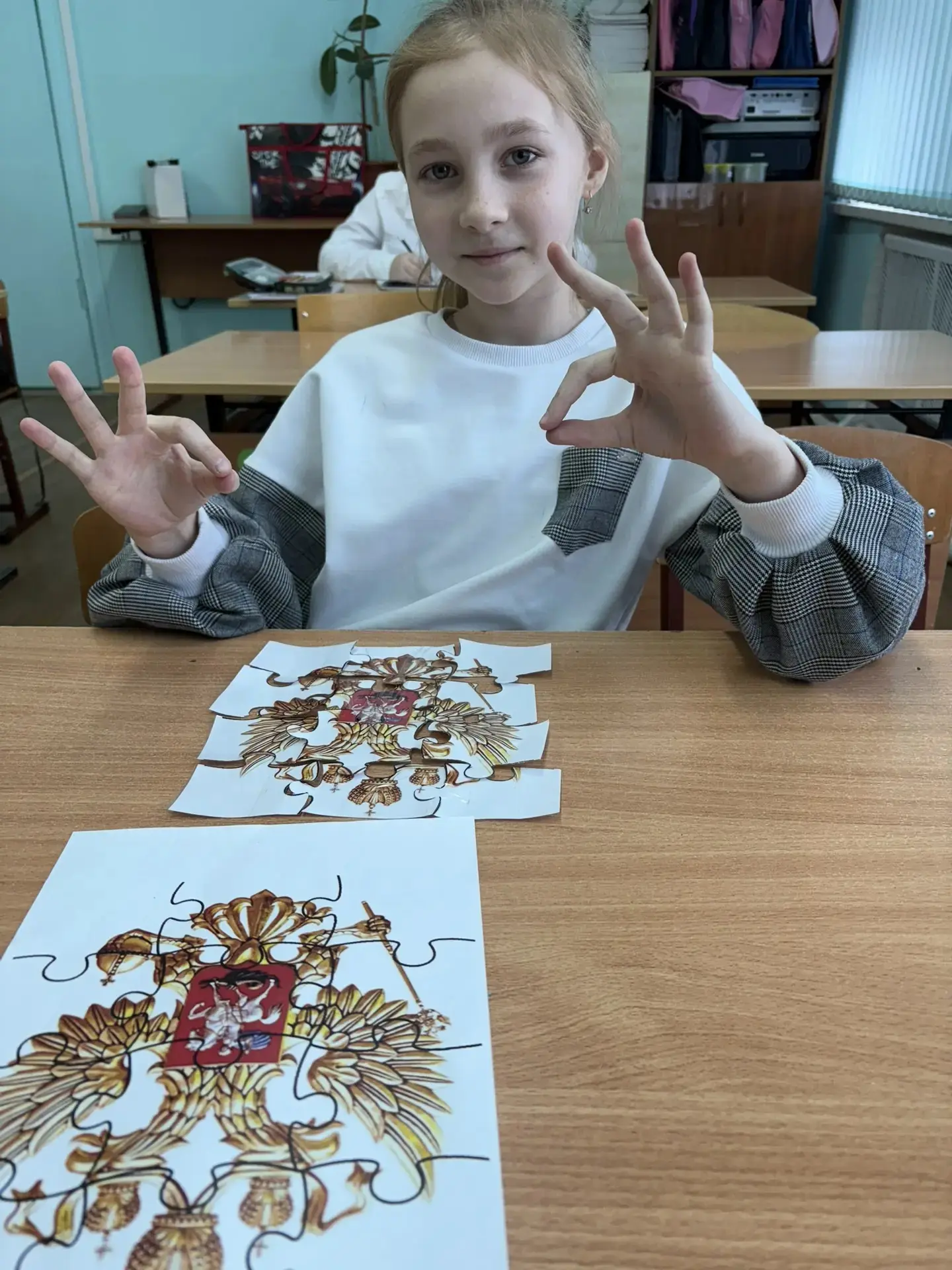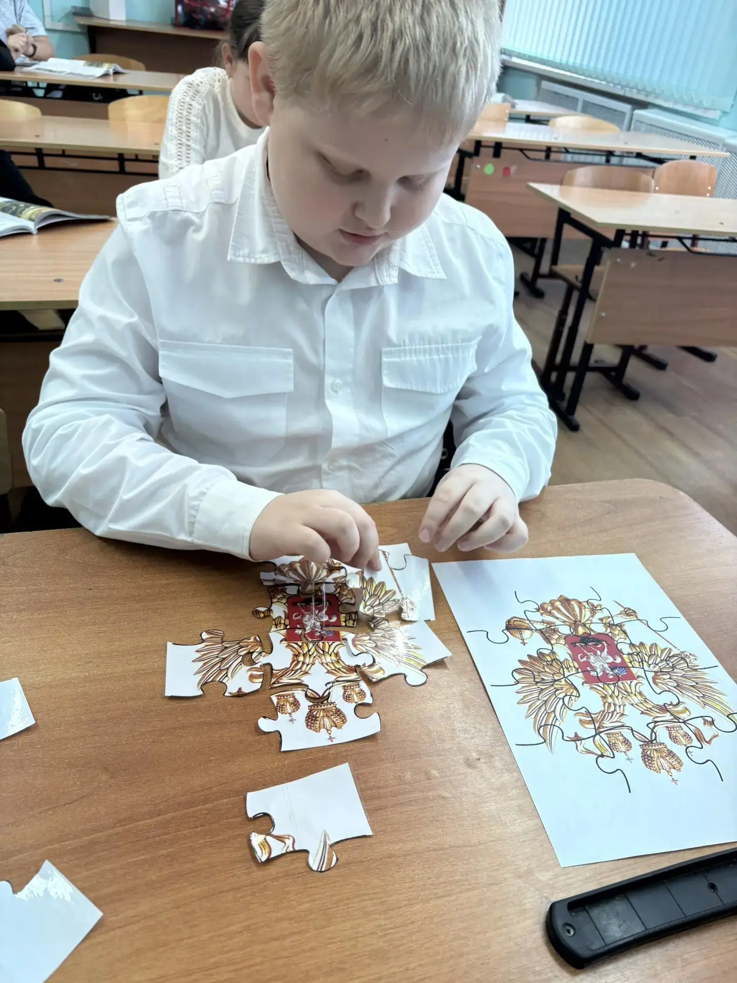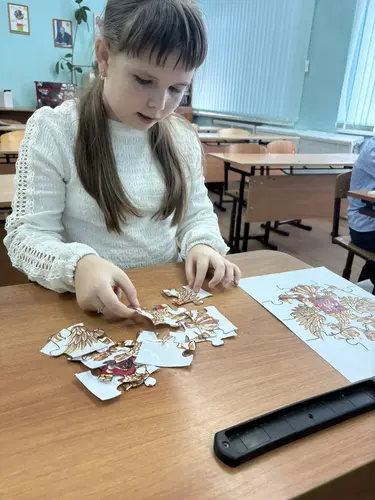Ученики 4 класса МБОУ СОШ №6 приняли участие в соревновании по сбору пазла с изображением герба Российской Федерации в рамках "активности" ко Дню Герба РФ.