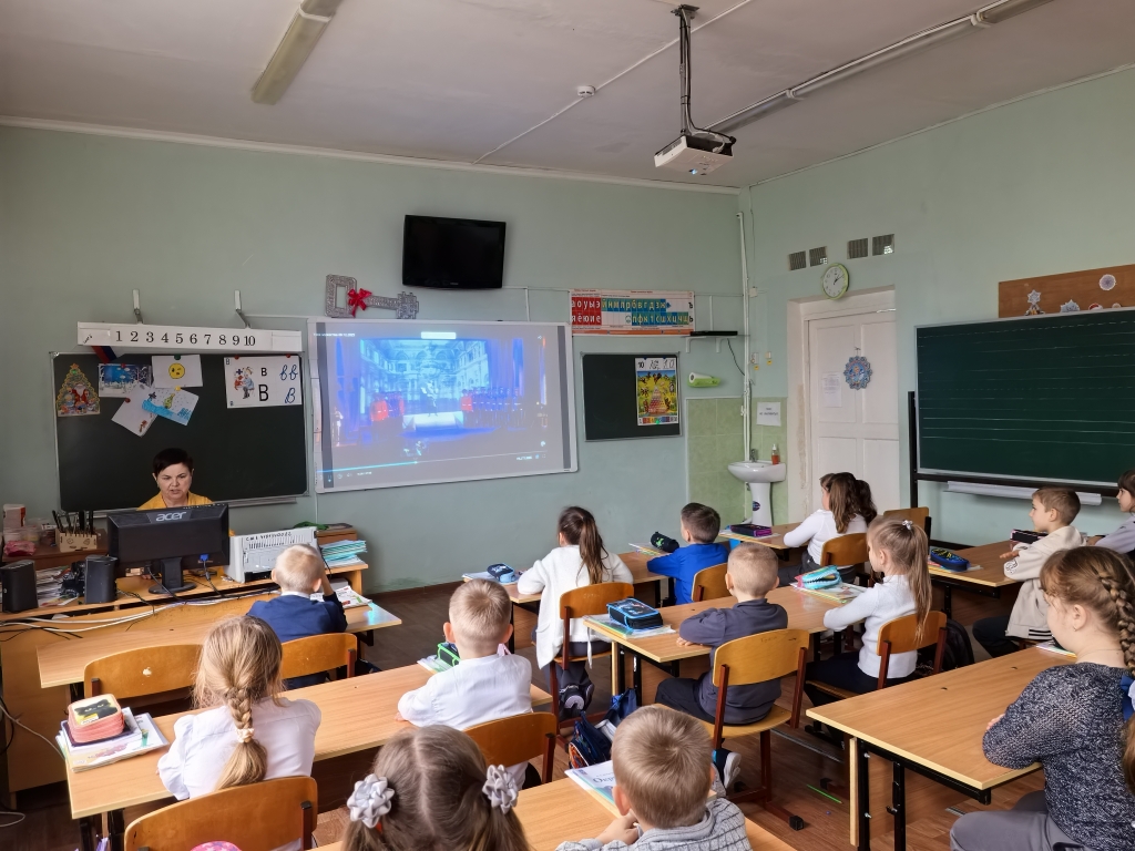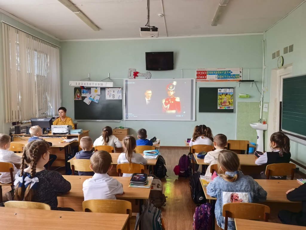 В школе был организован просмотр прямой трансляции открытого урока мужества с учениками 5-9 классов (всего 118 человека).