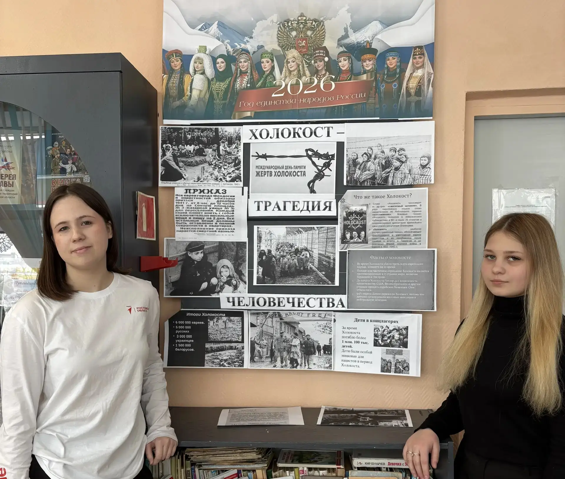 27 января советником директора по воспитанию школы №6 Егорушкиной Светланой совместно с педагогом-библиотекарем Суворовой Н.А. организована выставка-инсталляция, посвященная Международному дню памяти жертв Холокоста.