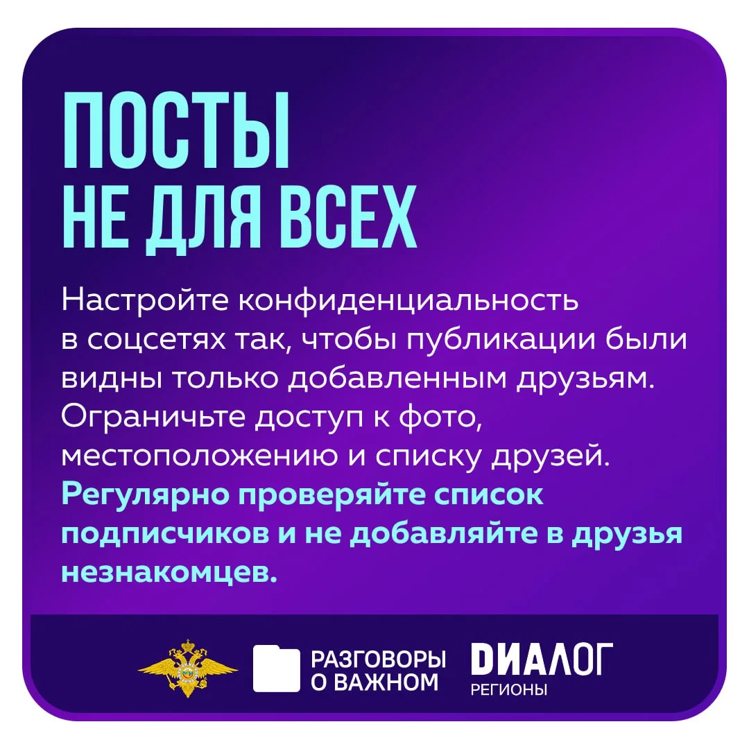 Школьники с 1 по 11 класс и учащиеся СПО познакомились с важнейшими правилами безопасного поведения в Интернете. Что нужно помнить каждому, чтобы общение в Сети было безопасным — рассказали в карточках.