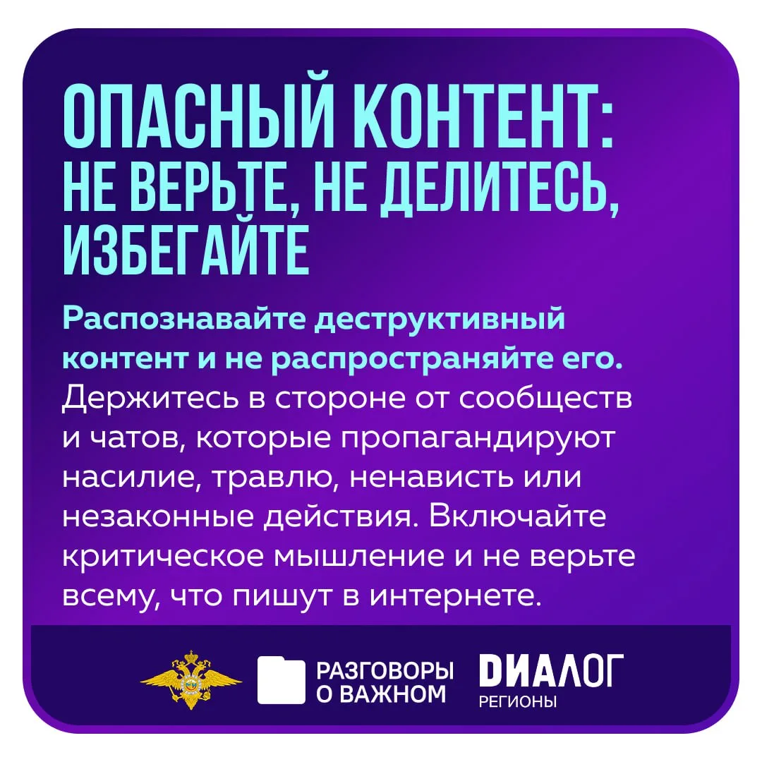 В понедельник, 2 марта, во всех школах России состоялось занятие цикла «Разговоры о важном» (https://max.ru/razgovori_o_vajnom), посвященное правилами безопасного поведения в Интернете. Материалы к занятию были разработаны совместно с экспертами УБК МВД России (https://max.ru/cyberpolice), АНО «Диалог Регионы» и психологами Московского государственного психолого-педагогического университета (https://max.ru/id7702181537_biz).