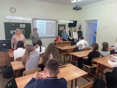 В школе №6 советником директора по воспитанию Егорушкиной Светланой и учителем русского языка и литературы Муженской В Н. совместно с активом обучающихся 7А класса проведен литературный праздник, посвященный 166-летию со дня рождения А.П.Чехова. В ходе занятия ребята организовали выступление с рассказом о жизни и творчестве Антона Павловича Чехова, а также представили театральный показ отрывка из рассказа "Ванька".