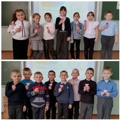 Учащиеся 1 класса: Абрамов Артём, Данильченко Виктория, Енина София, Зарубин Никита, Башкатова Есения, Плотников Владимир и Скрипниченко Ева приняли участие в акции "Поздравляю с Новым годом!". Ребята нарисовали открытки и написали в них добрые пожелания участникам СВО.